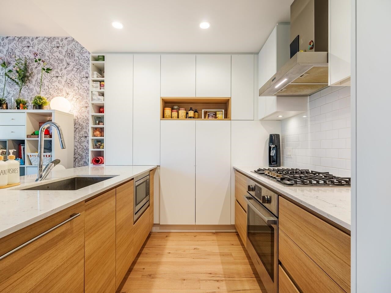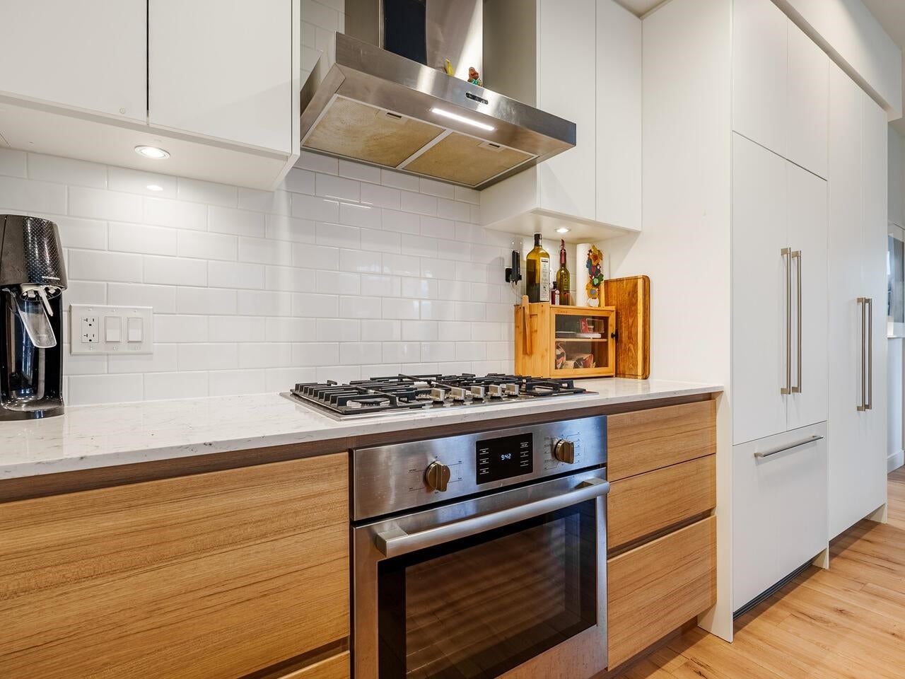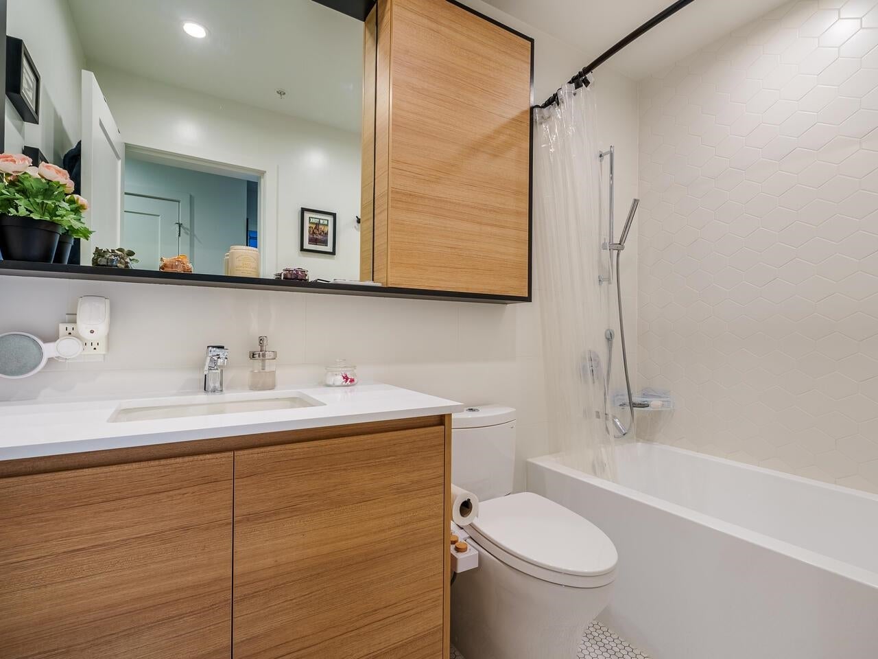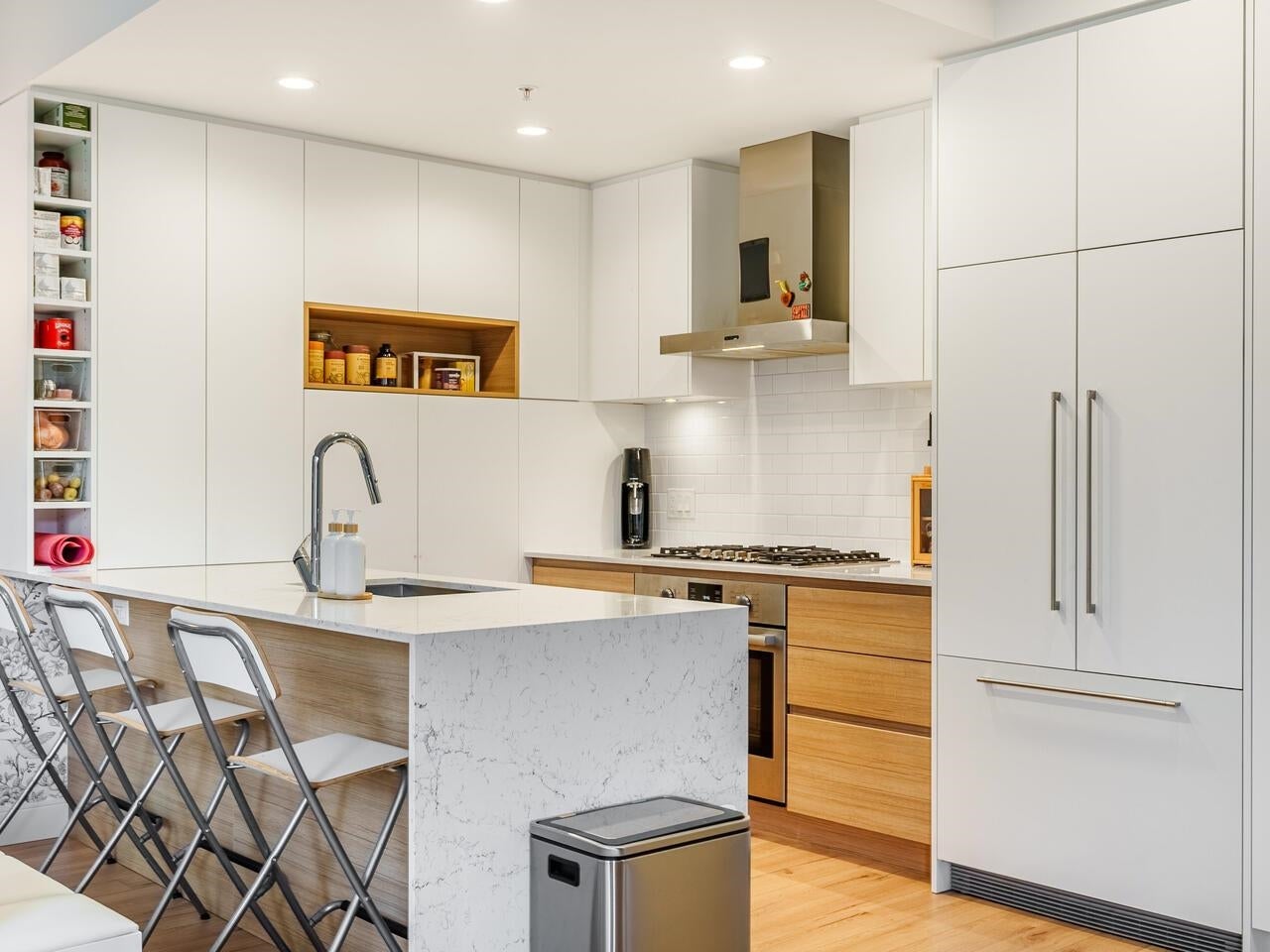 This 2 BED +DEN CORNER UNIT has it all! Enjoy open concept living, 9ft ceilings, & plank style flooring throughout. Kitchen w/ high-end integrated appliances, gas range, electric stove, loads of cabinets, pantry & quartz waterfall countertops. Enjoy relaxing on your SW facing deck. Primary bedroom w/ lots of built-in storage/ drawers & spa-like ~best describes the 5 pc ensuite w/ stylish hexagon porcelain tile flooring & stone counters. Ownership offers exclusive use to CLUB 50- over 9000 Sq Ft of AMAZING amenities ; media, yoga & co - work areas, state of the art fitness centre- kid/ play area, dog wash & guest suite +LOCATION- stroll to skytrain, WCE, trendy shops, restaurants & breweries.Open House Sat, Sept 27th, 2-4pm