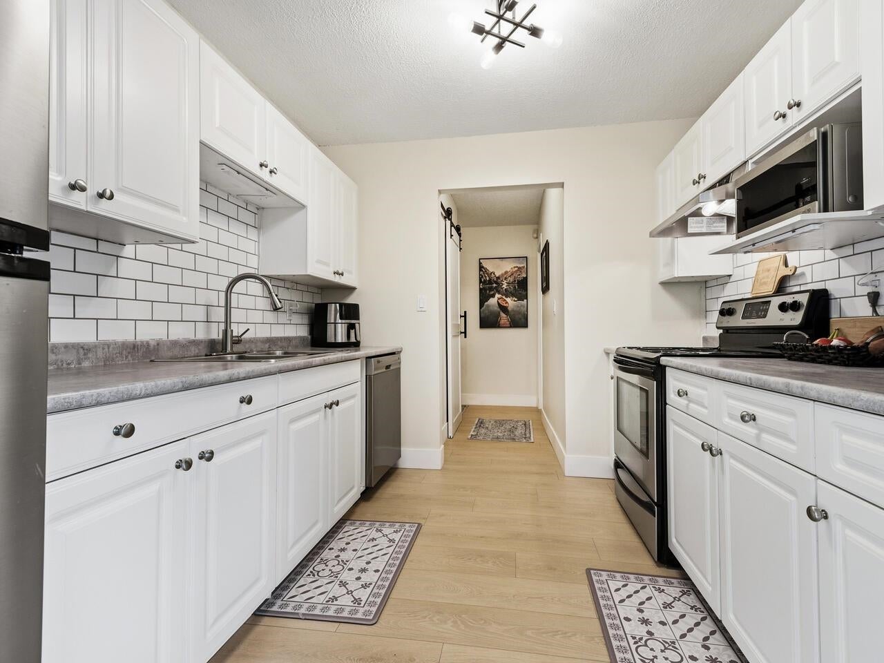 Beautiful and cozy 2-bedroom plus den, 2-bathroom rancher—perfect for family living. This desirable corner unit is ideally located within the complex and offers excellent privacy. Recent upgrades include new blond wide-plank flooring throughout, fresh paint, fully renovated bathrooms, and a new tiled kitchen backsplash, giving the home a modern and stylish feel. Step outside to your own private, fully fenced backyard complete with a storage shed with power, ideal for hobbies, storage, or a workshop. The home includes a single carport with additional parking available. Conveniently located directly across from an elementary school and on a bus route, this home offers comfort, privacy, and everyday convenience. Schedule your private showing today! Open House: Sunday, January 11th, 2–4 PM