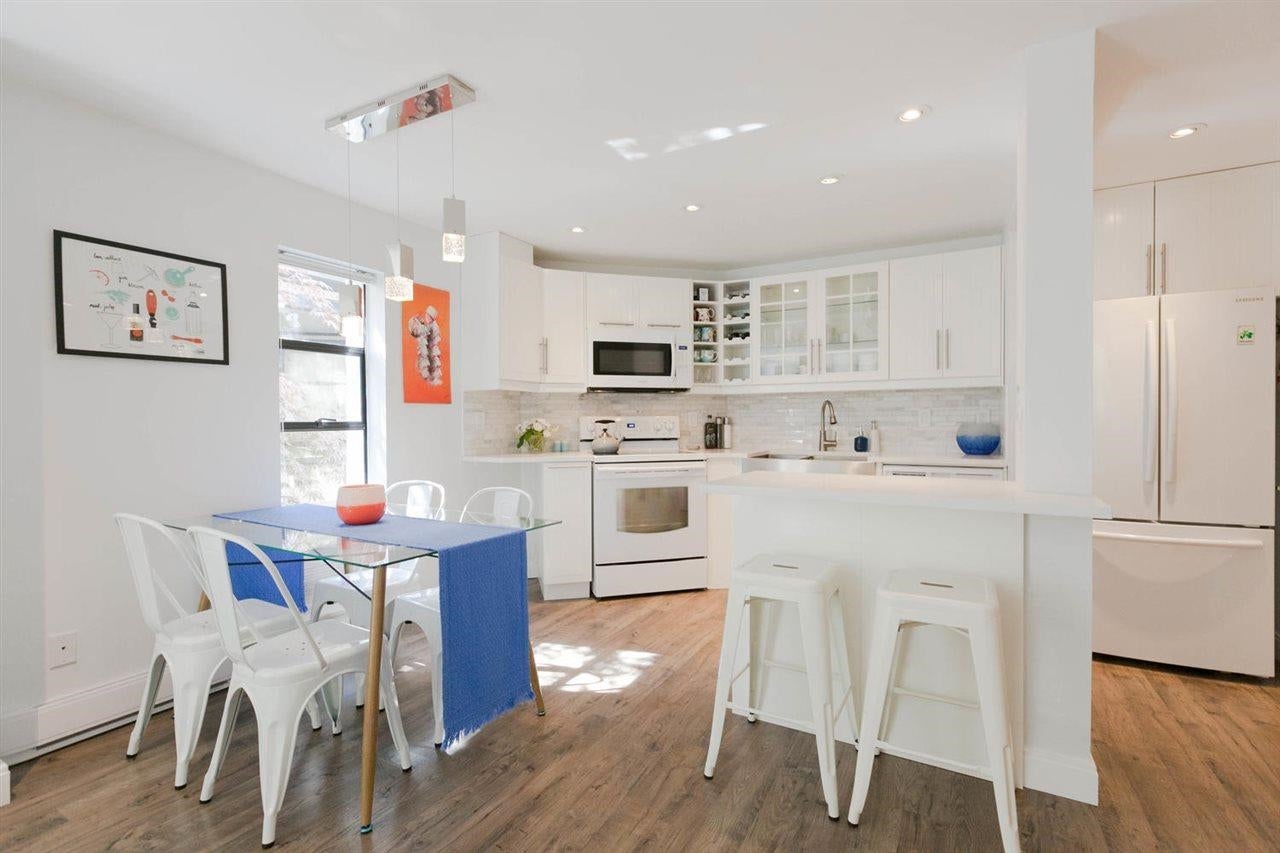 Enjoy the best of townhome living in the heart of the West End. Rarely available this bright NE corner open concept 2 bedroom, 2 bath 1172sqft home has been meticulously renovated and features the best of indoor outdoor living with private garden, terrace off the living room, private entry, in suite laundry, oversized bedrooms and an absolutely gorgeous mid century wood burning fireplace. Perfectly nestled on a quiet tree lined street, with Davie and Robson Streets at your doorstep, this sought after boutique building has even received offers from potential developers and enjoys a proactive strata. Pet and Rental friendly and includes 1 secured parking, plus ample street parking. Don't miss out on this gem. Open house , Sun, April 12th, 2-4pm.